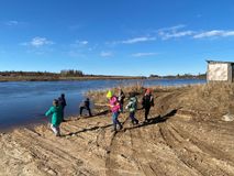 В апреле ребята побывали на экскурсии на реке Онега. Познакомились с такими понятиями как «паводок», летняя и зимняя «межень», «скорость течения». А также устроили соревнования по «блинчикам», бросая камешки в воду.